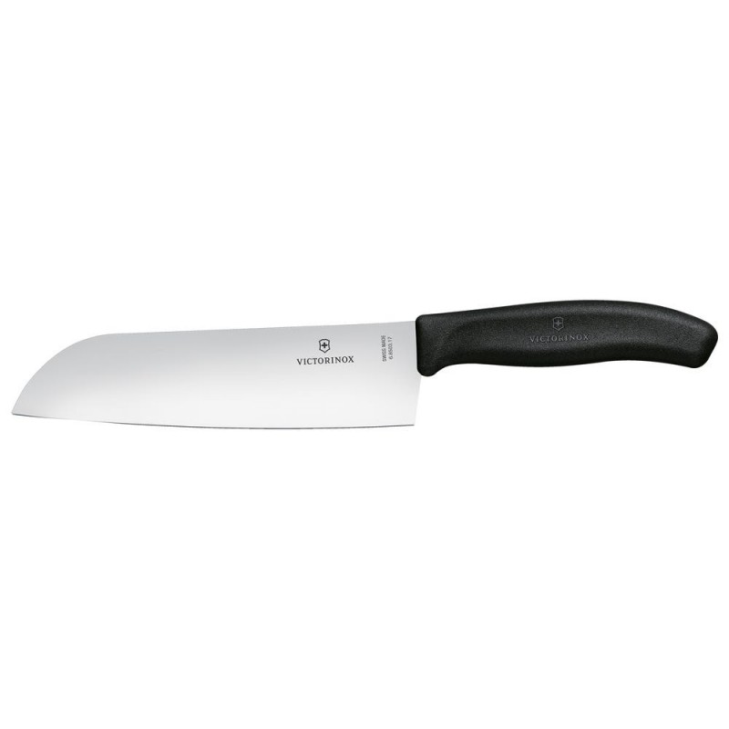 Cuchillo santoku de acero inoxidable Victorinox®, es la versión japonesa del cuchillo de cocina multiusos. Lo puedes usar para llevar a cabo todo tipo de tareas culinarias como rebanar, trocear y picar, destaca por hacer todo bien. Gracias a su particular diseño, bajo peso y equilibrio perfecto, es un cuchillo versátil que te dará placer usar.
